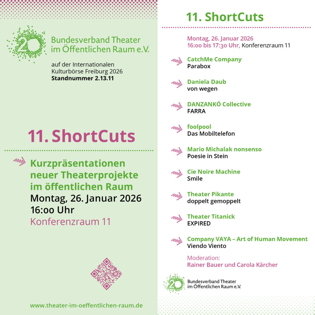 Am 26.01.2026 finden die 11. ShortCuts im Rahmen der 37. Internationalen Kulturbörse Freiburg statt.